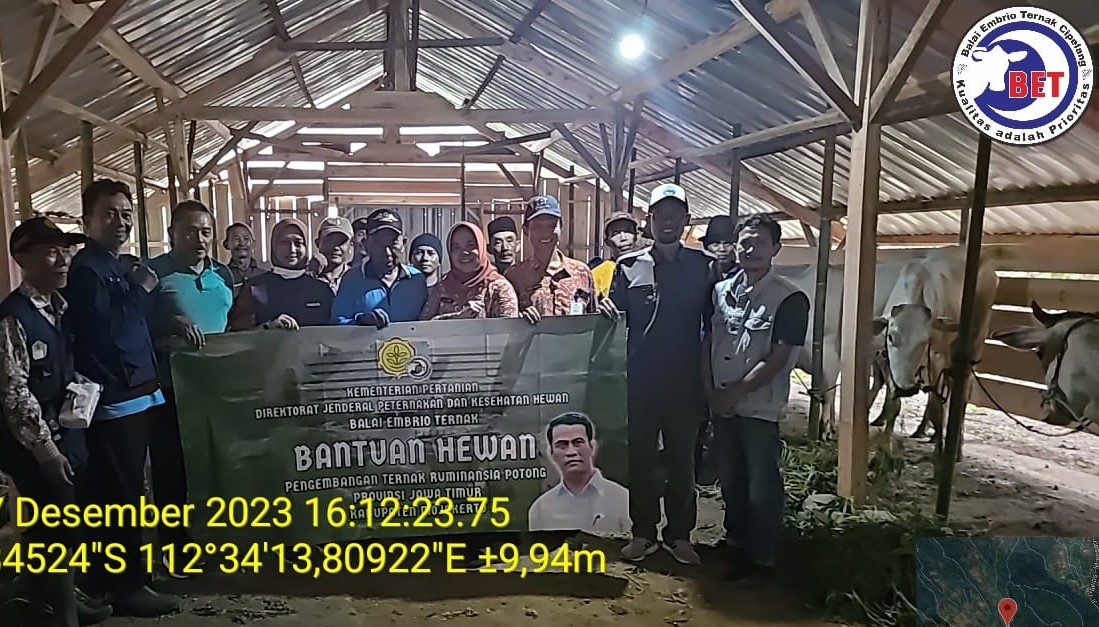 Setelah dilakukan koordinasi dengan Dinas Pertanian Kabupaten Mojokerto dan Dinas Pertanian Kabupaten Ngawi, sapi-sapi tersebut didistribusikan tanggal 7 Desember 2023 ke 2 kelompok tani tersebut, didampingi dari Dinas Pertanian, PPL, unsur muspida (Kepala Desa), Tim Teknis BET Cipelang dan Penyedia. Tim distribusi BET Cipelang dibagi 2 tim, yakni distribusi ke Kelompok Tani Tani Jaya, di Kecamatan Pacet, Kabupaten Mojokerto sebanyak 20 ekor dan tim yang distribusi ke Kelompok Tani Sumber Widodo di Kecamatan Karanganyar, Kabupaten Ngawi sebanyak 20 ekor. Dilakukan pengecekan spesifikasi teknis secara sampling di kandang kelompok dan disaksikan oleh Dinas Pertanian, PPL, Ketua dan anggota kelompok, dan Penyedia. Setelah itu dilakukan serah terima ternak bantuan dengan ketua kelompok.
